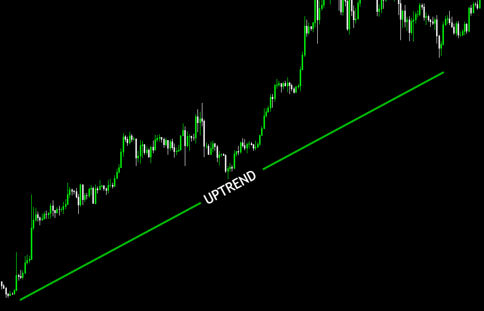 An uptrend usually means higher highs and higher lows.