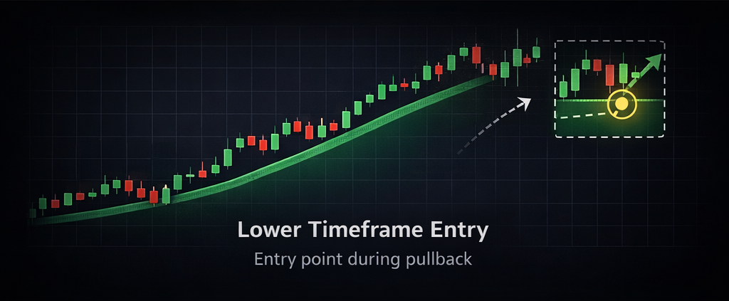 Start higher (Daily/Weekly) to mark the main trend and key support/resistance.